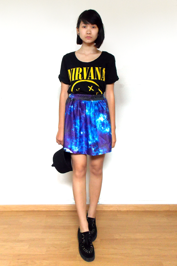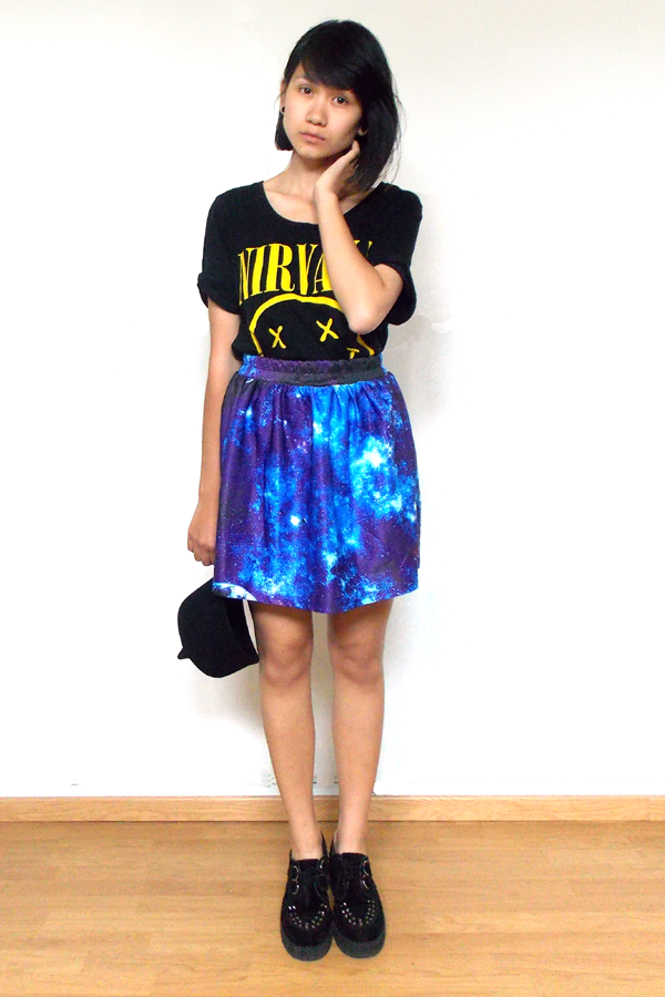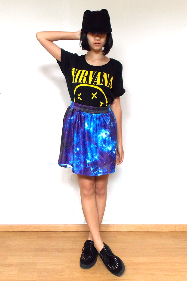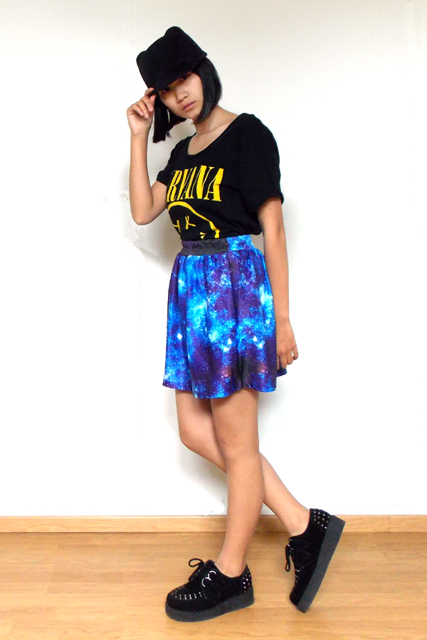 Nirvana Band T – New Look creepers – Fashiondacci galaxy skirt & cat hat
