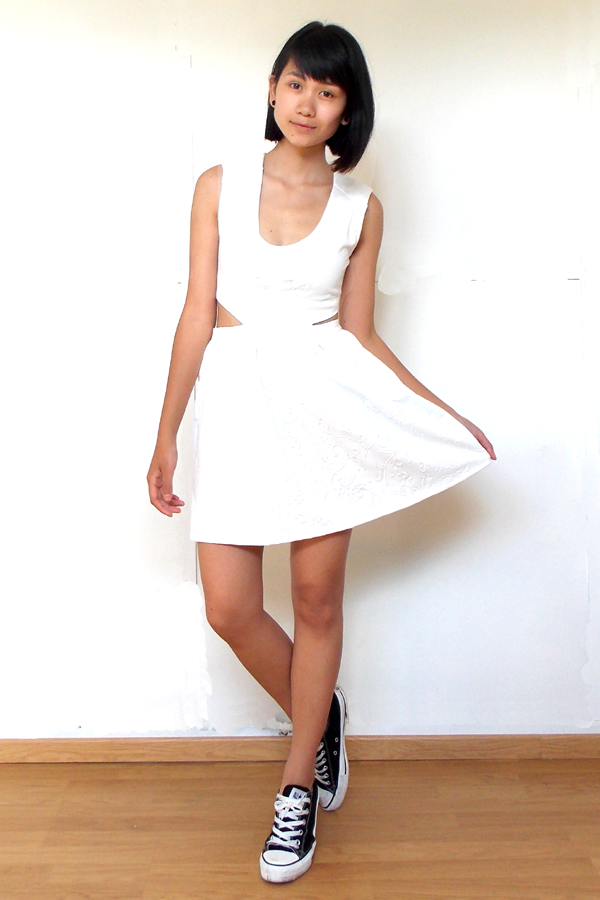 I immediately wanted this cut out dress when I laid my eyes on it! The fabric is a litte bit thicker than your avreage summer dress but I hope the white will reflect the sunlight enough. The dress also has these flower patterns that you can hardly see but surely can feel. Freakin’ love it!