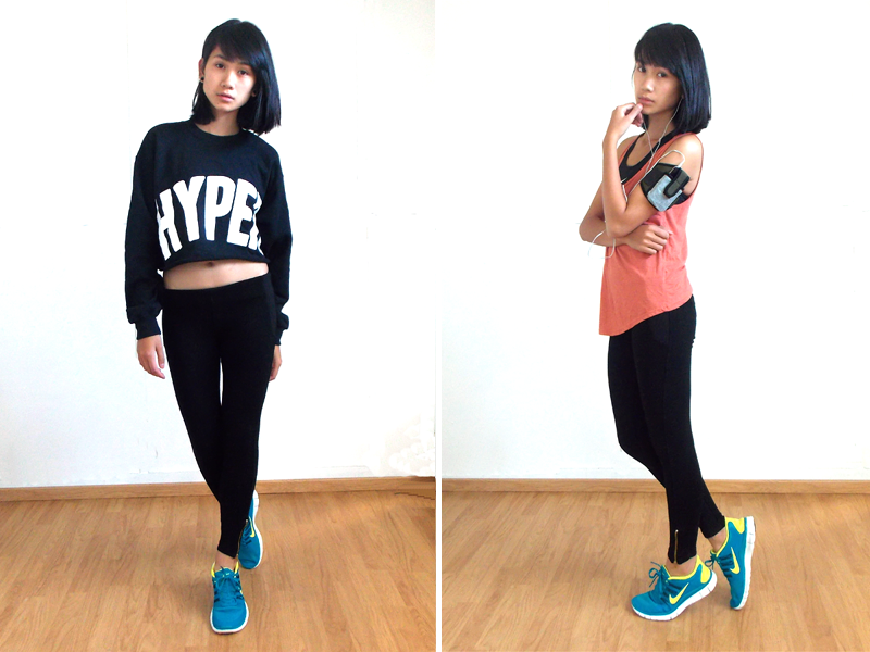 My Free Runs from JD Sports are awesomely stylish enough to wear under leggings. My leggings are casual enough to wear as gym leggings. My sportsbra can be worn under my sweater because seriously… Who will notice? The only thing I have to do is change into a loose top, grab my mp3 and I am ready to go. It takes 2 minutes, TOP. This way I can jog before it gets too dark + it makes me feel like Superman when I quickly change as a pro.