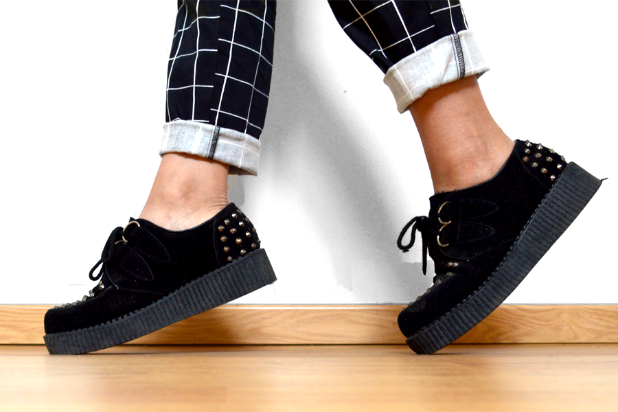 The crop top reveales just an appropriate amount of flesh. The three quartered sleeves makes it perfect for those summer nights! By adding creepers, the outfit just got a touch of grunge.