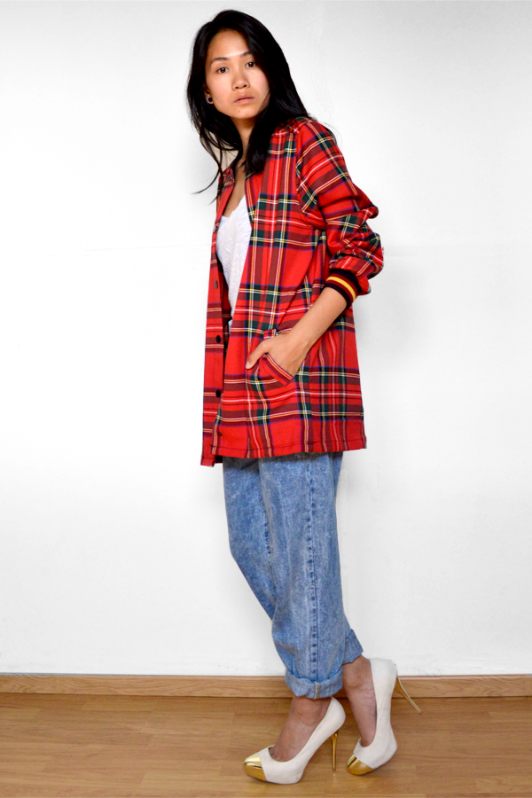 Pairing it with my trusty old boyfriend jeans and some chic shoes, the plaid jacket is the perfect finishing touch that suits my personal style.
