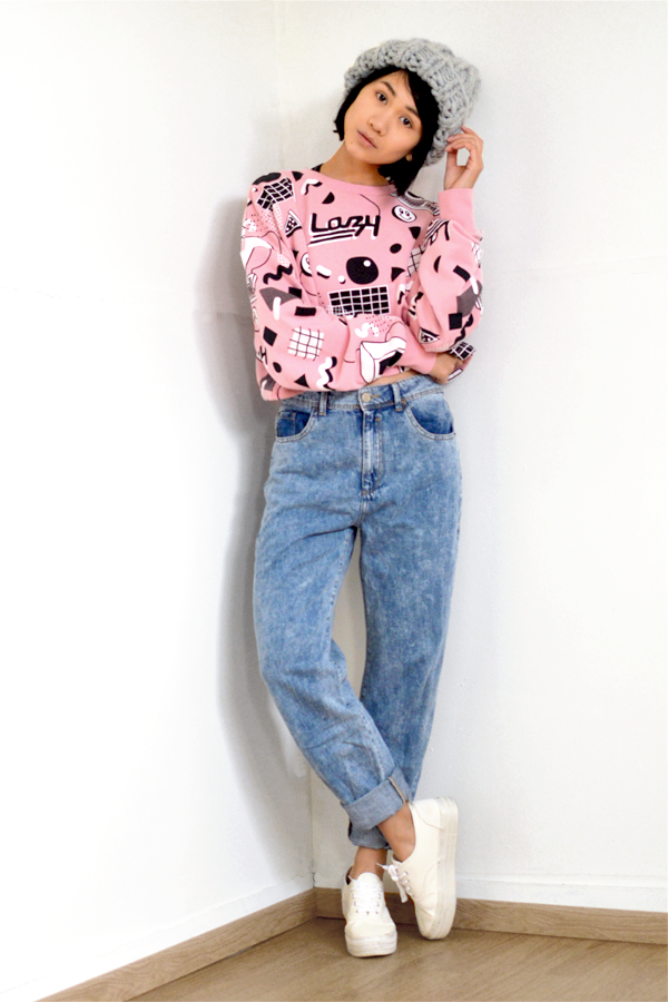 H&M Helsinki hat and shoes- Lazy Oaf sweater – Bershka jeans